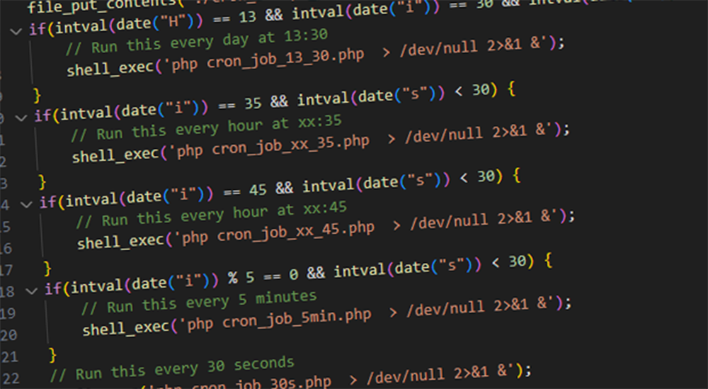 Sometimes you may run into situation where you would need to set a cron job but your hosting provider doesn’t support them or only allows you to run scheduled jobs for example only once in hour when you would need to do a task more often. In my case I ran into latter case and… Continue reading Imitating a frequent cron job with php